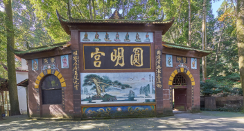 园明宫称清虚观,道教宫观,因供奉圆明道母天尊而得名。坐落在青城丈人山北木鱼山的缓...
